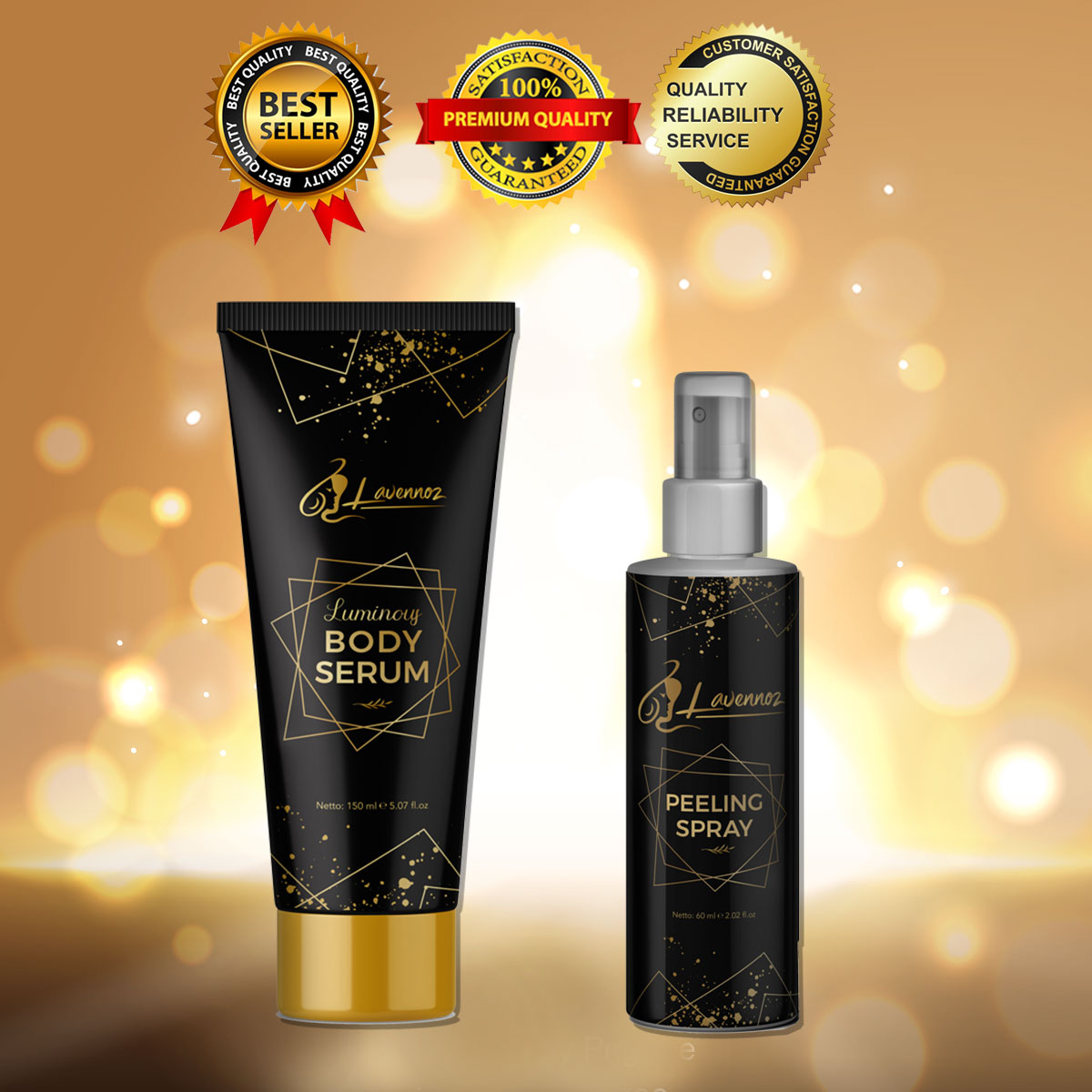 Serum pemutih badan untuk membantu mencerahkan kulit dan sebagai UV filter. Lavennoz Body Serum dan Lavennoz Peeling Spray akan membantu menjaga kulit dari paparan sengatan sinar matahari agar kulit tidak rusak dan gelap.